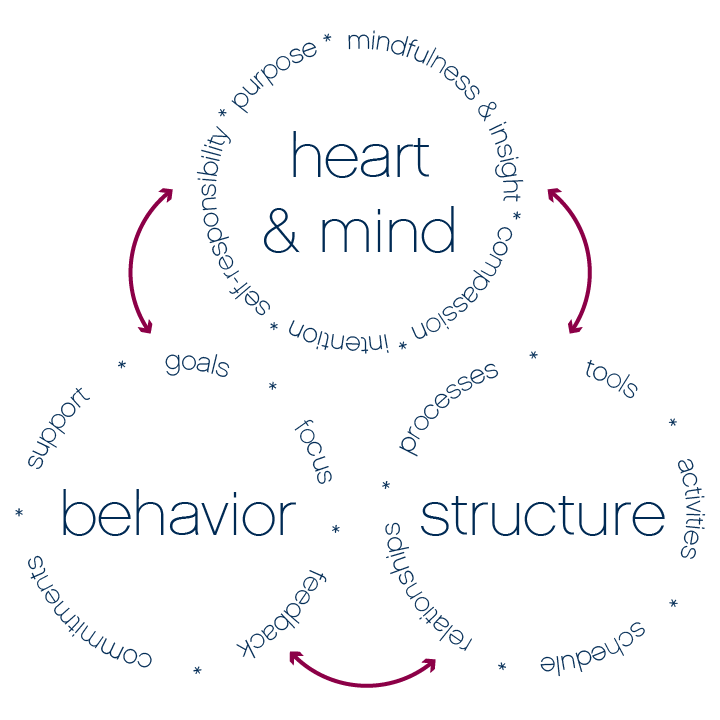 • Structures: The external environmental realities which impact Hearts & Minds and Behavior—the micro systems and structures that make up our individual lives: the organizational systems, structures, and processes in which we work, and the larger social and economic systems that dominate our society.